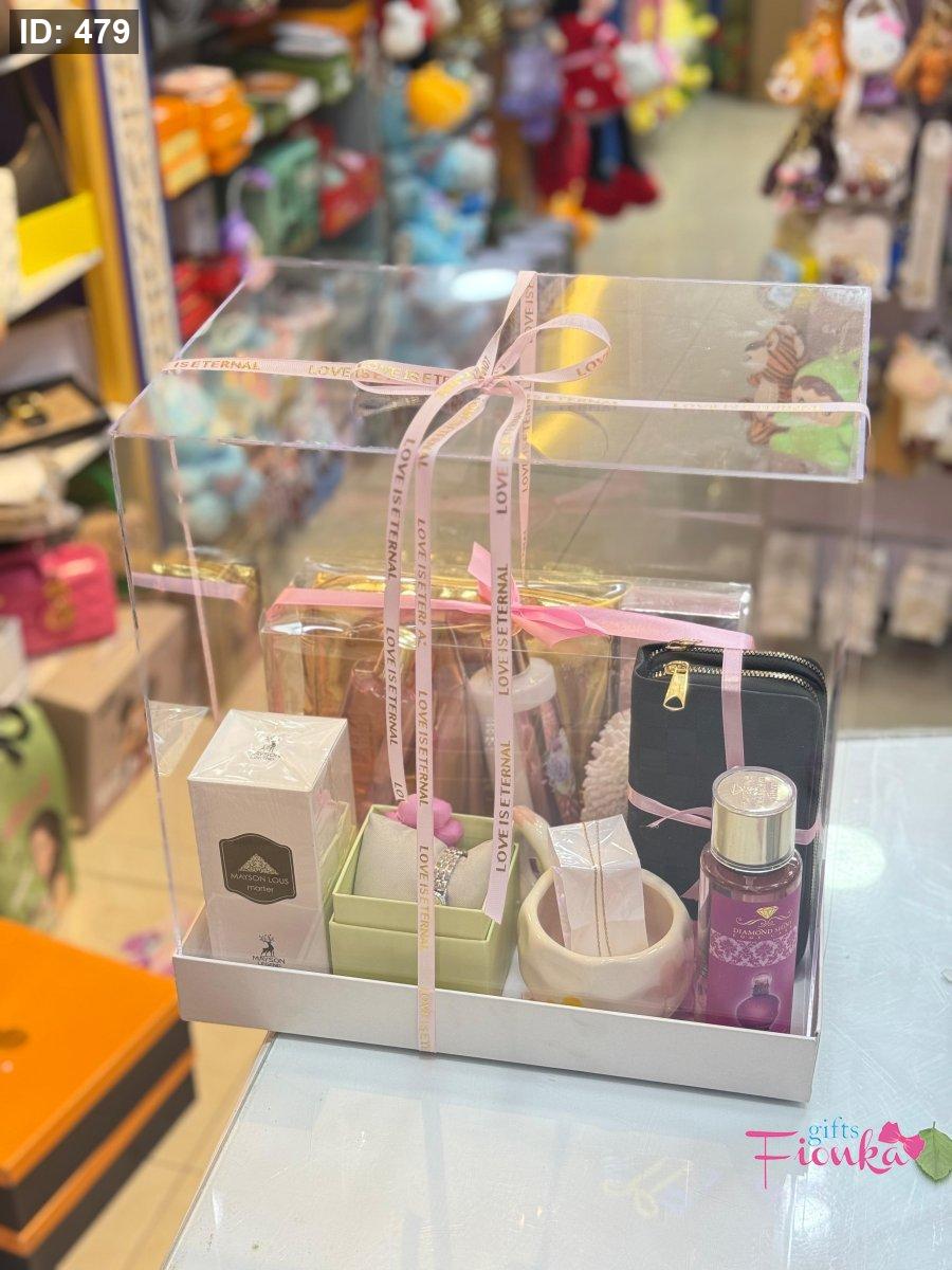 صندوق اكرلك ، بكج عناية بالجسم ، عطر ، جزدان ، سبلاش ، كاسه ، ساعه ، سنسال